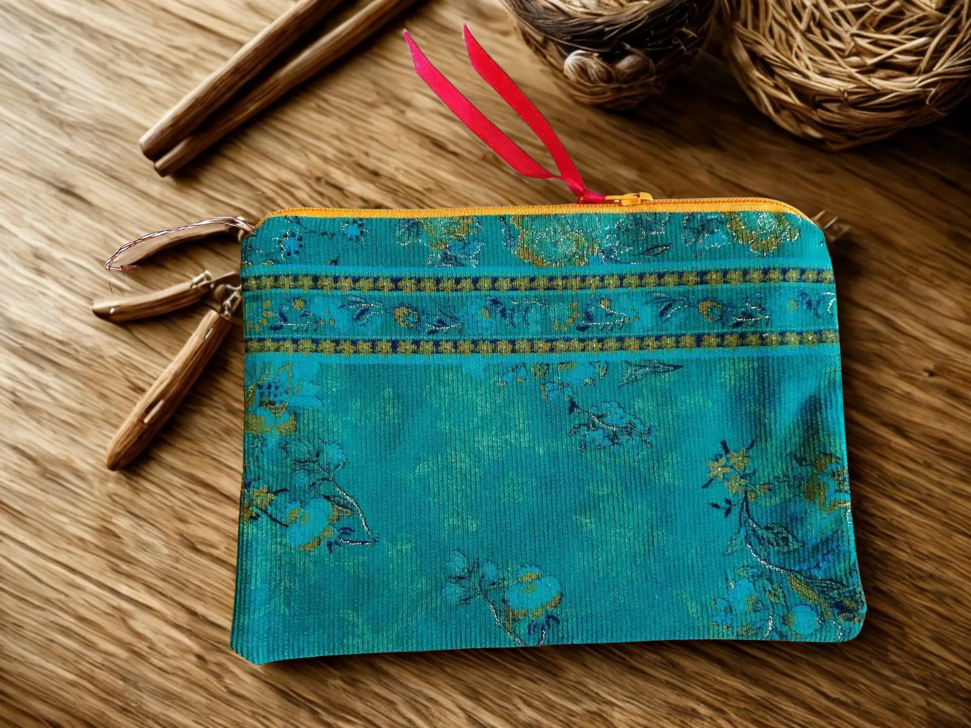 Handcrafted wallet with combination of green and blue colors. Elegant and practical, made in Armenian textile style.