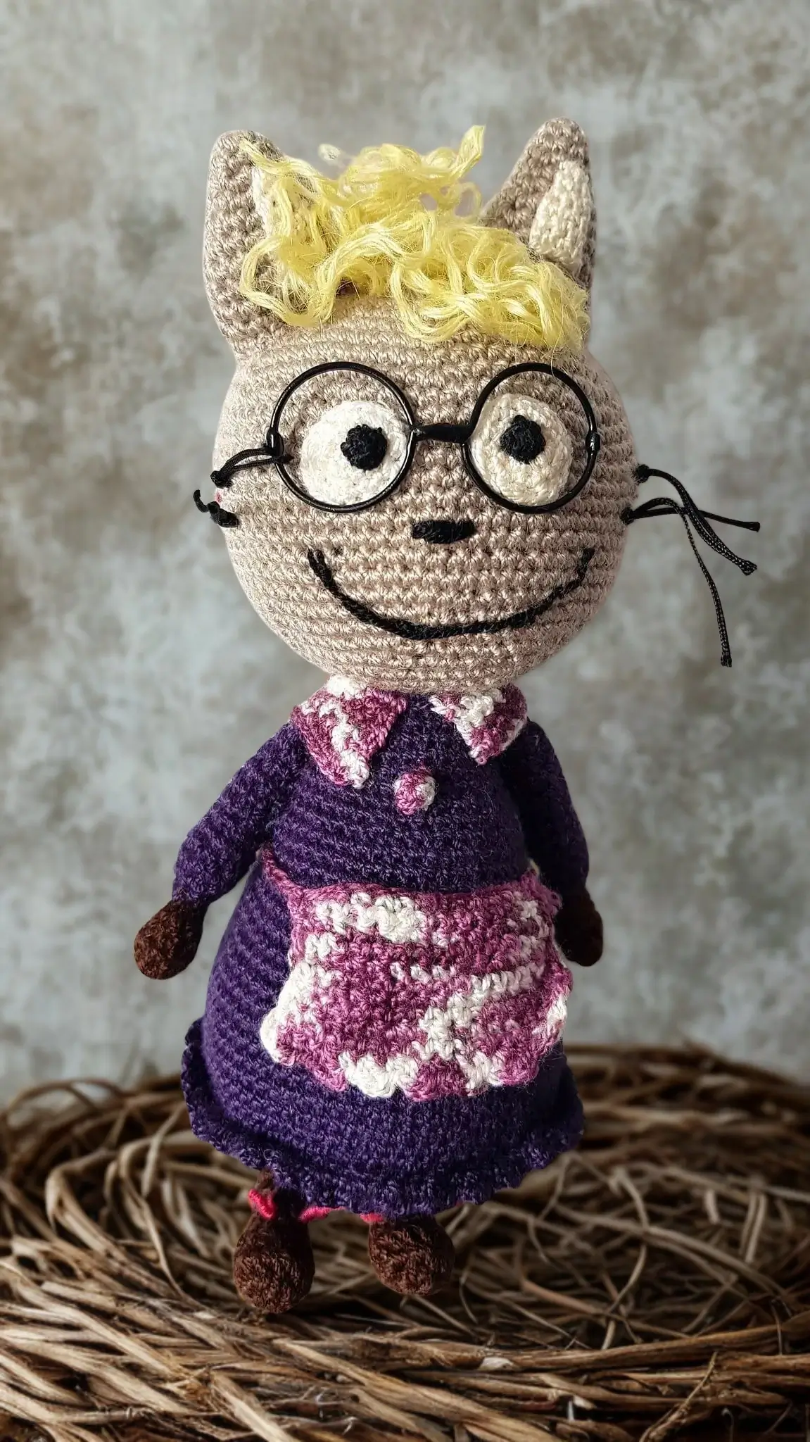 Mother cat handcrafted with knitting, with soft, warm and unique character. Also suitable for collectors.