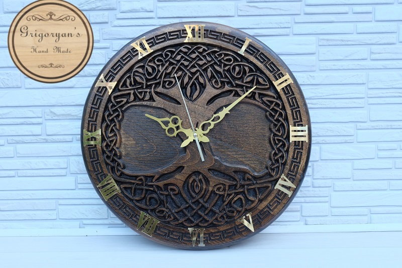 Հարդարեք ձեր ինտերիերը բնական հաճարեփայտից պատրաստված նրբագեղ պատի փորագրված ժամացույցով՝ զարդանախշերով։ Այս ժամացույցը կդառնա ձեր տան դեկորի գերազանց լրացում։