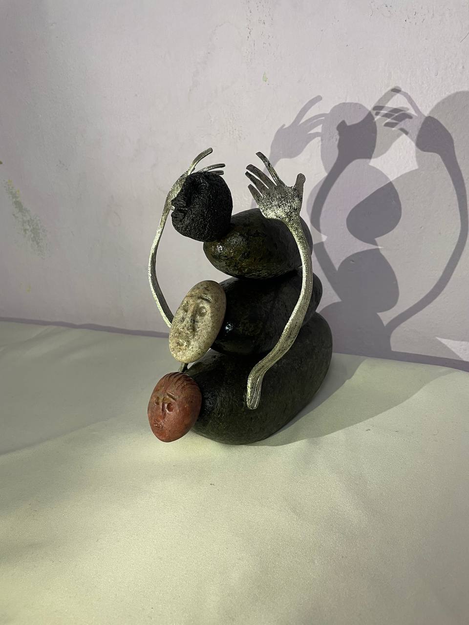 Может быть, и ты Скульптура выполнена из камня и железа, сочетая в себе бесшумную силу тяжелых натуральных материалов и загадочный дизайн, отражающий внутренний мир человека. Работа автора представляет собой думающую, наблюдающую или стоящую посреди действия фигуру, которая словно недавно ушла из реальной жизни и превратилась в скульптуру.
